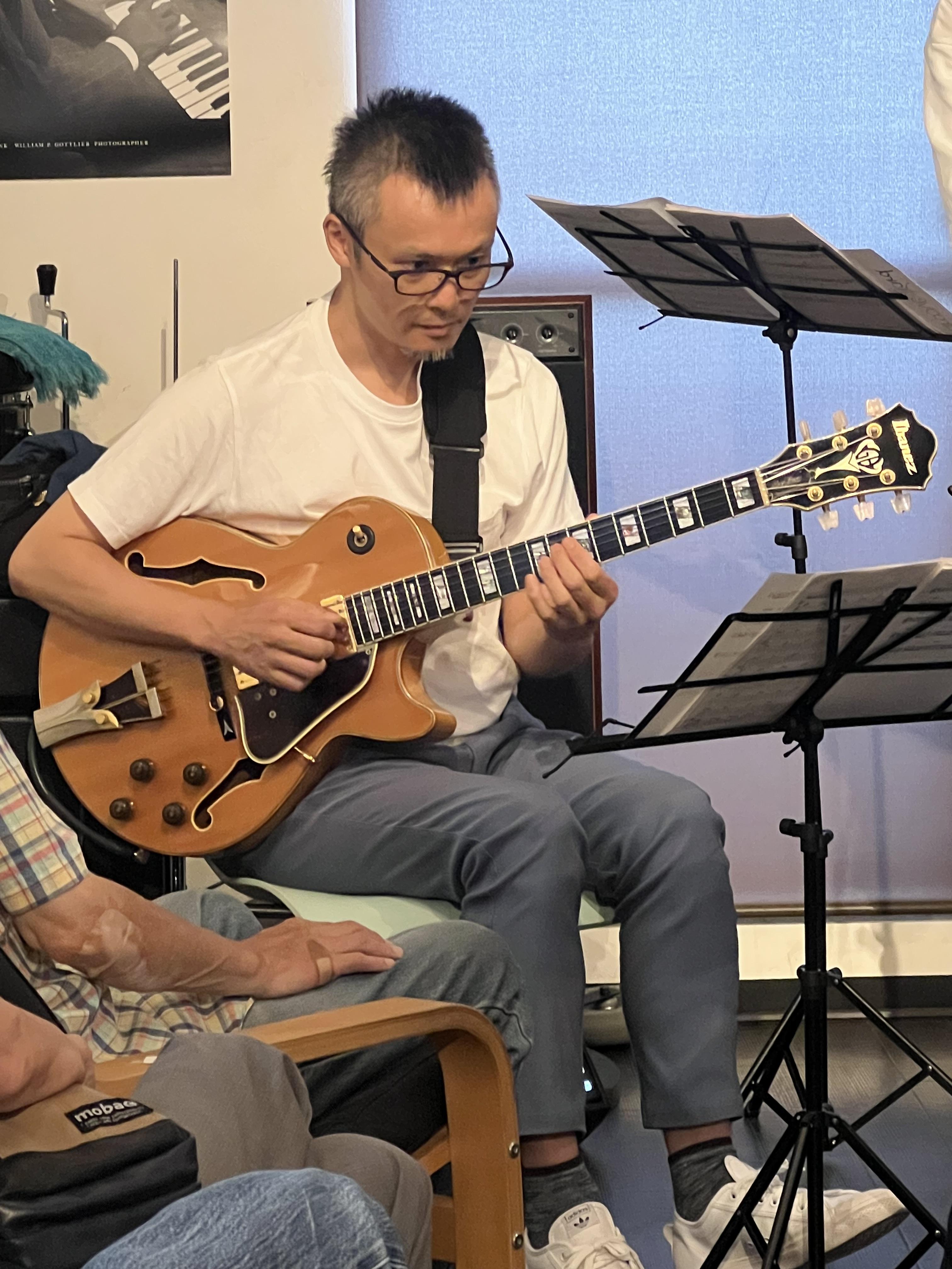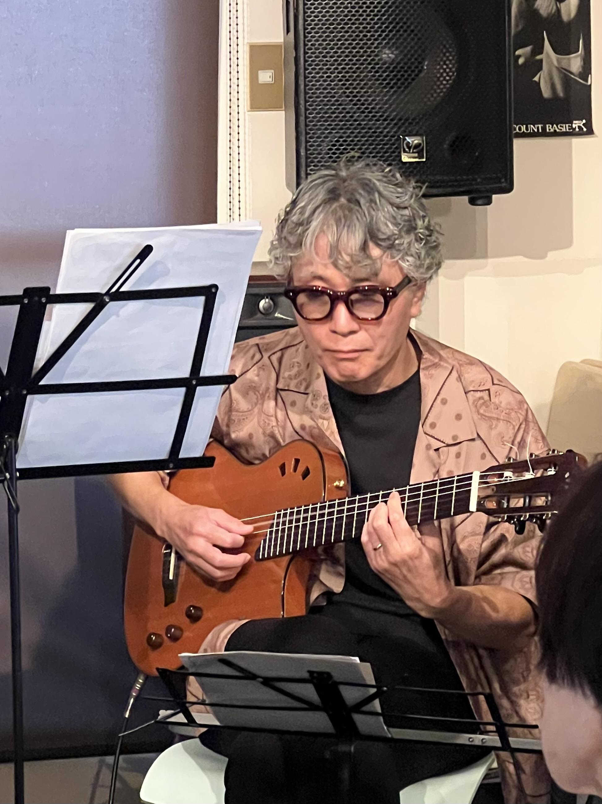 で聴かせてくれました。大野さんソロが丁度いい音で店で響きます、素敵過ぎるソロ、ジャズソロ!ギター好きを黙らせるソロ!