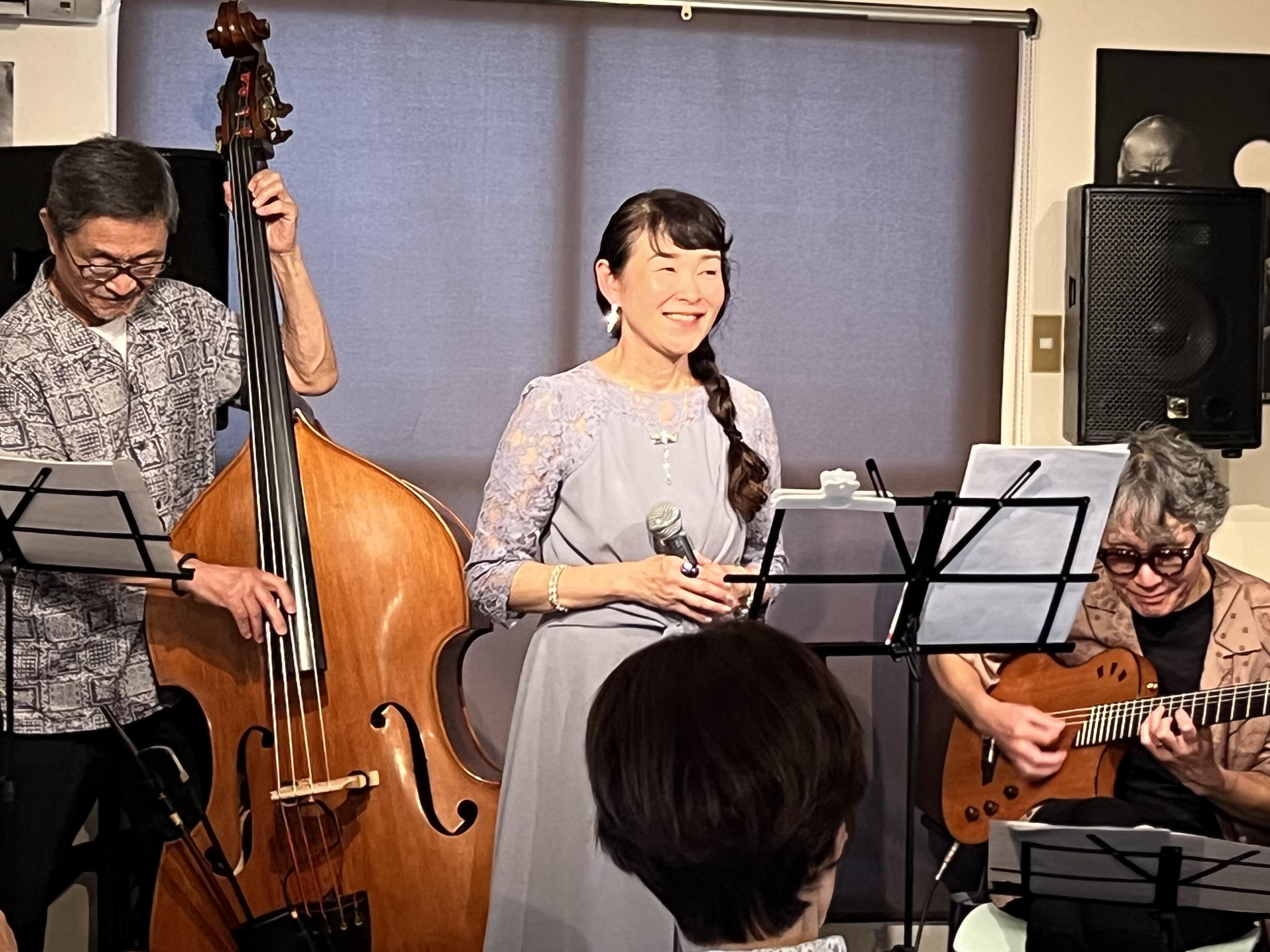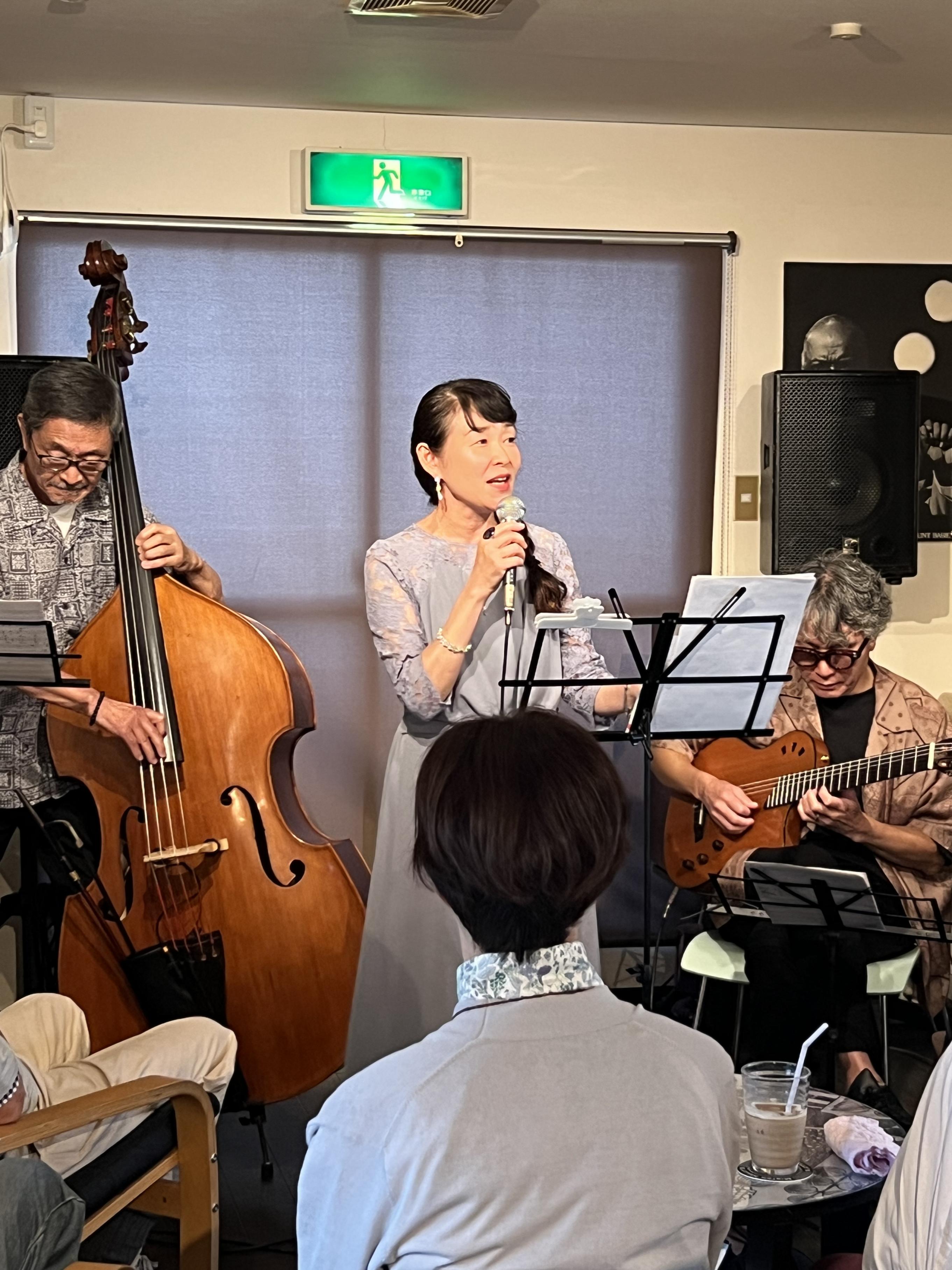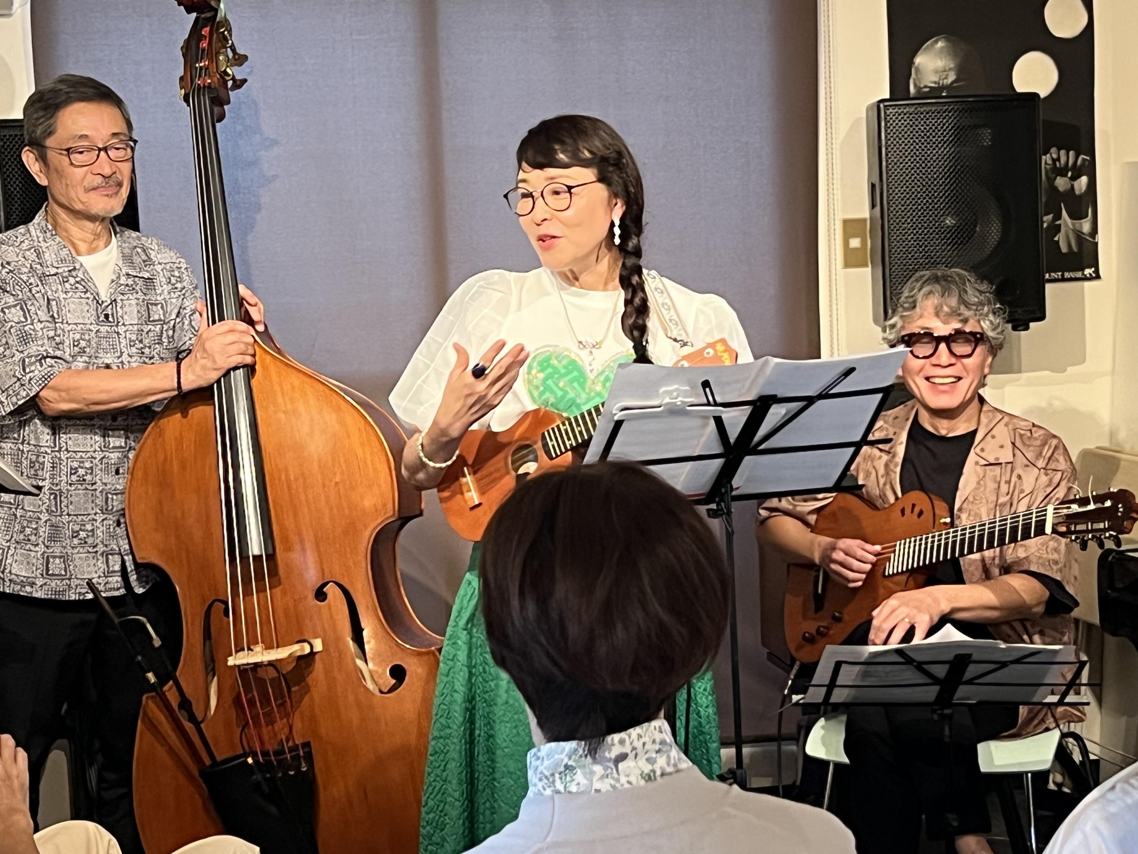 昨日のライブは「客席半分以上がマダムで占められたライブ!彼女達の拍手や視線を大いに受けながら、心より愛するジャズを歌うヴォーカリスト清水ひろみさんが、神田芳郎&能勢英史シッカとしたベテランデュオと披露した快適トリオライブ、しかも初公開清水ひろみウクレレデビューライブ」 でもありました。