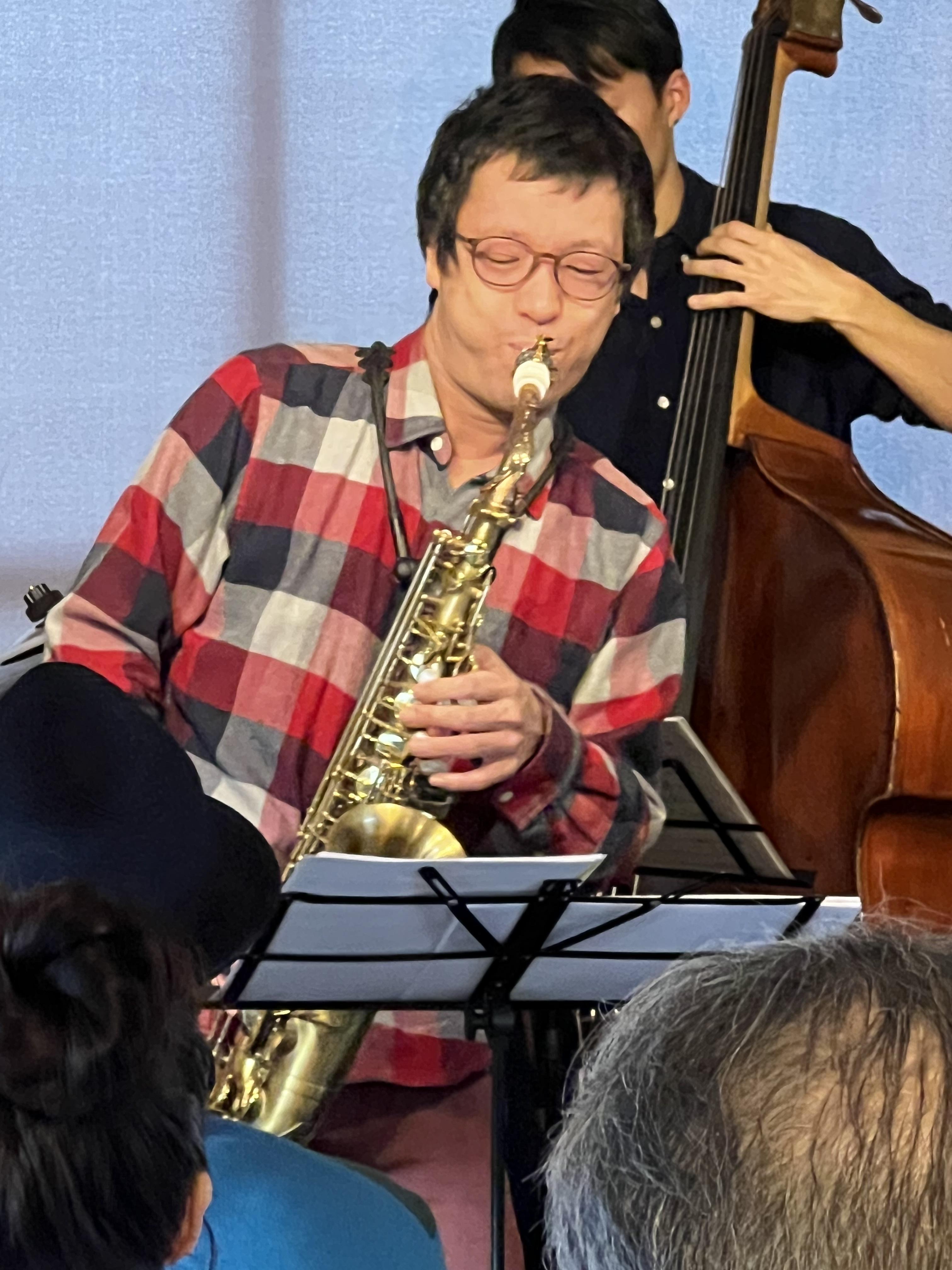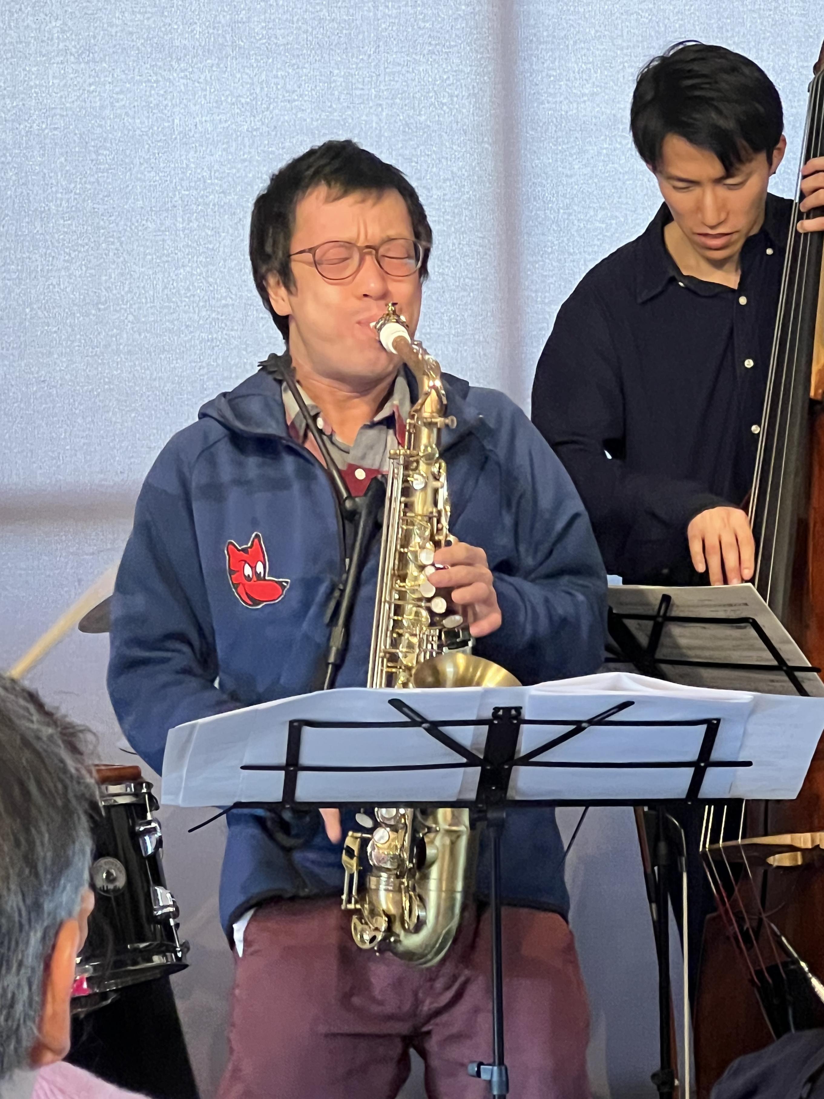 杉山ピアノソロ+橋本ドラムのきれいなマッチの後、武藤アルトソロ~!やり切った感あるストイックな演奏でした。