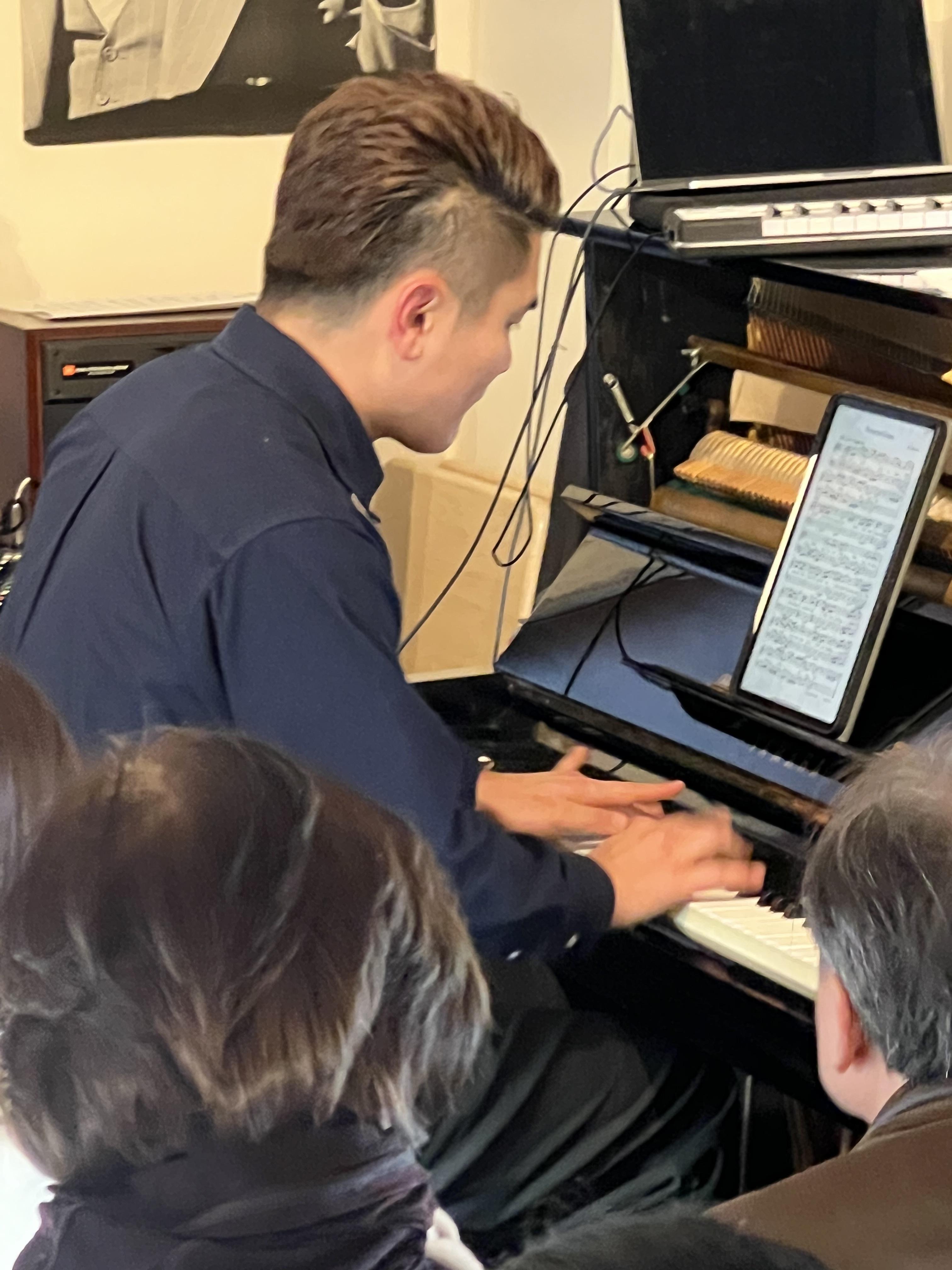 杉山さん一瞬立ち上がり、ピアノ弾いてました(写真うつせず)