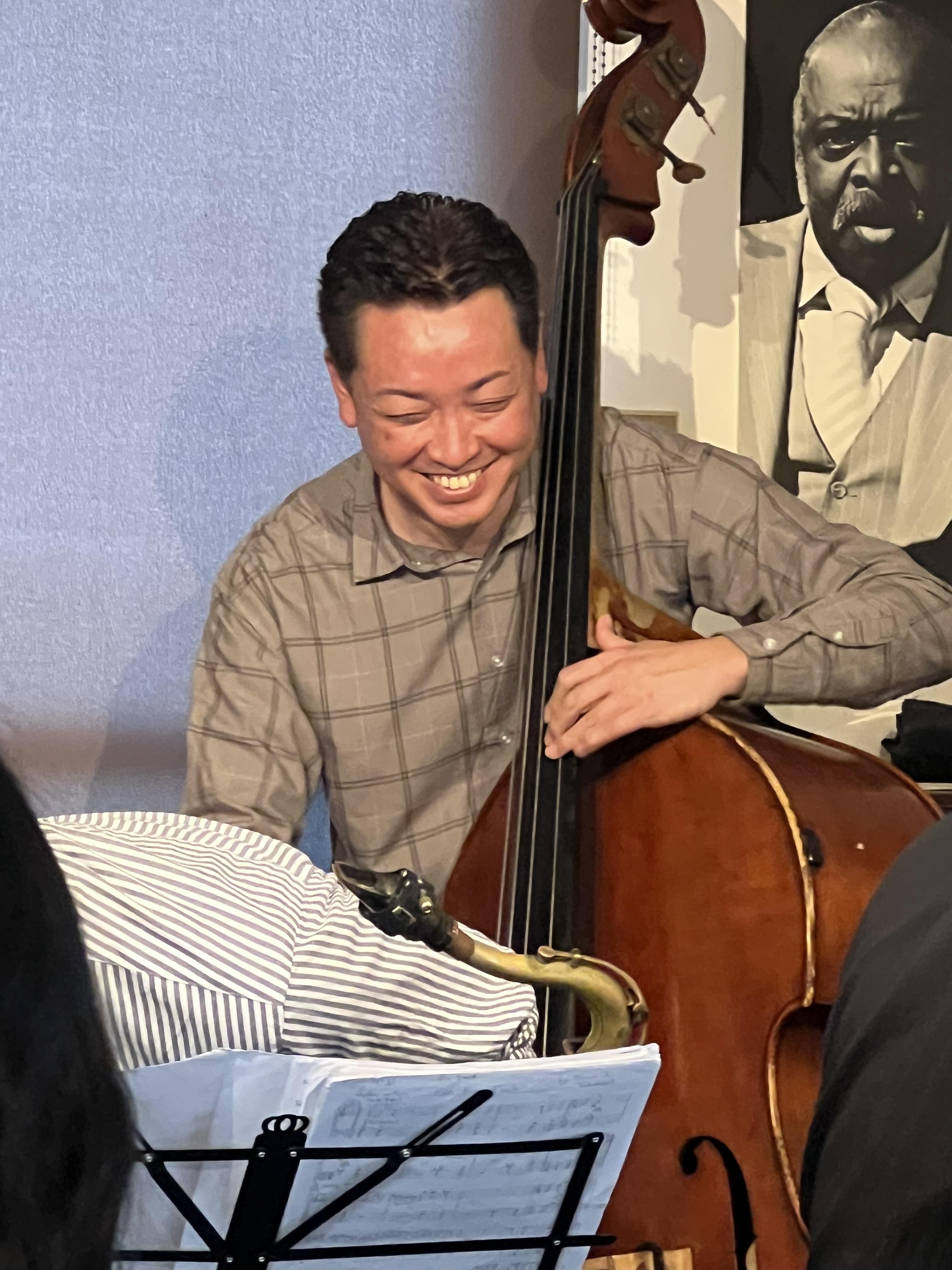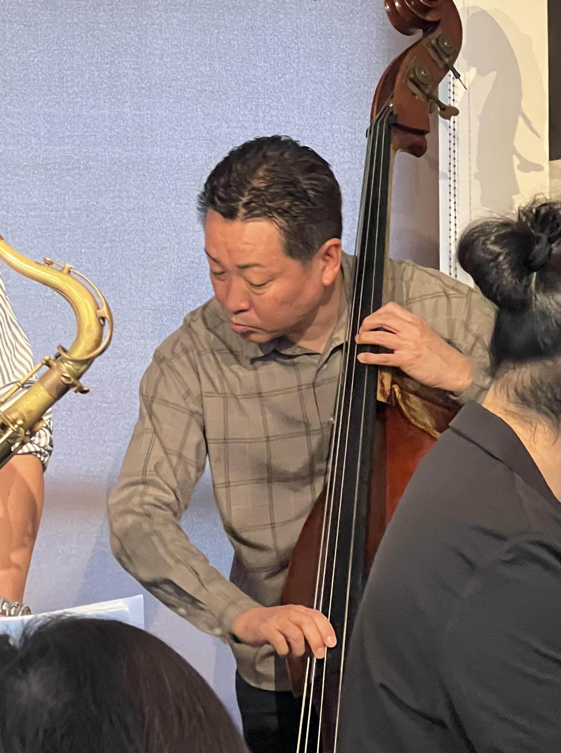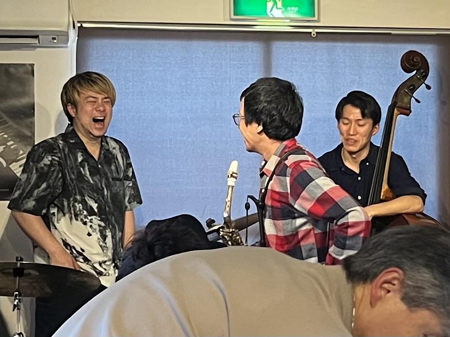「Swimin'」を梅本ベースソロが淡々と、又熱く語る感じが凄く良い音で素敵でした。梅本ベースソロに納得の頷きをされてる方が客席におられました。