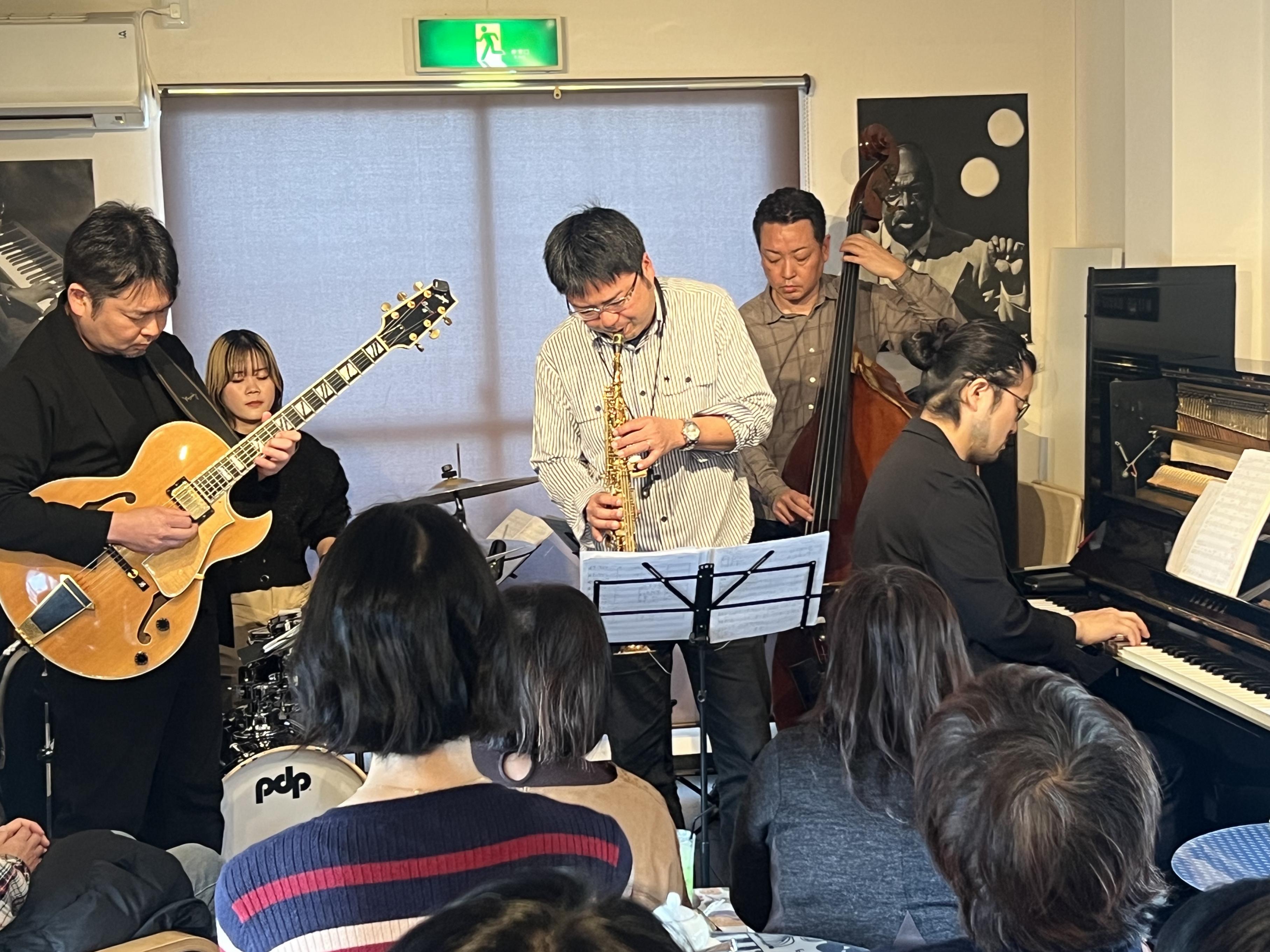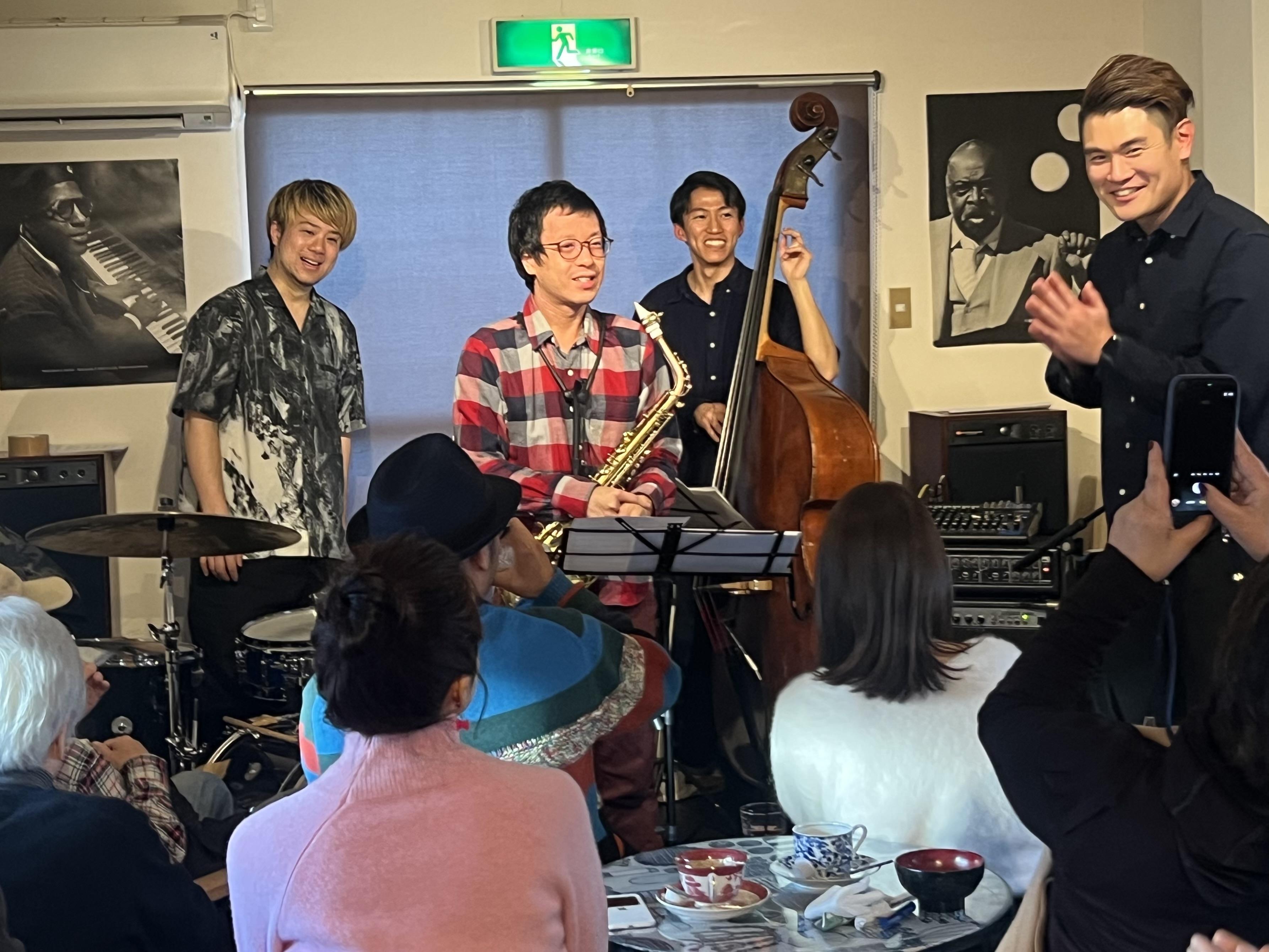 昨日は高橋知道クインテット~高橋知道(ts)金子友宣(g)加納新吾(p)宮野友巴(g)早川紗世(ds)ライブを開催しました。