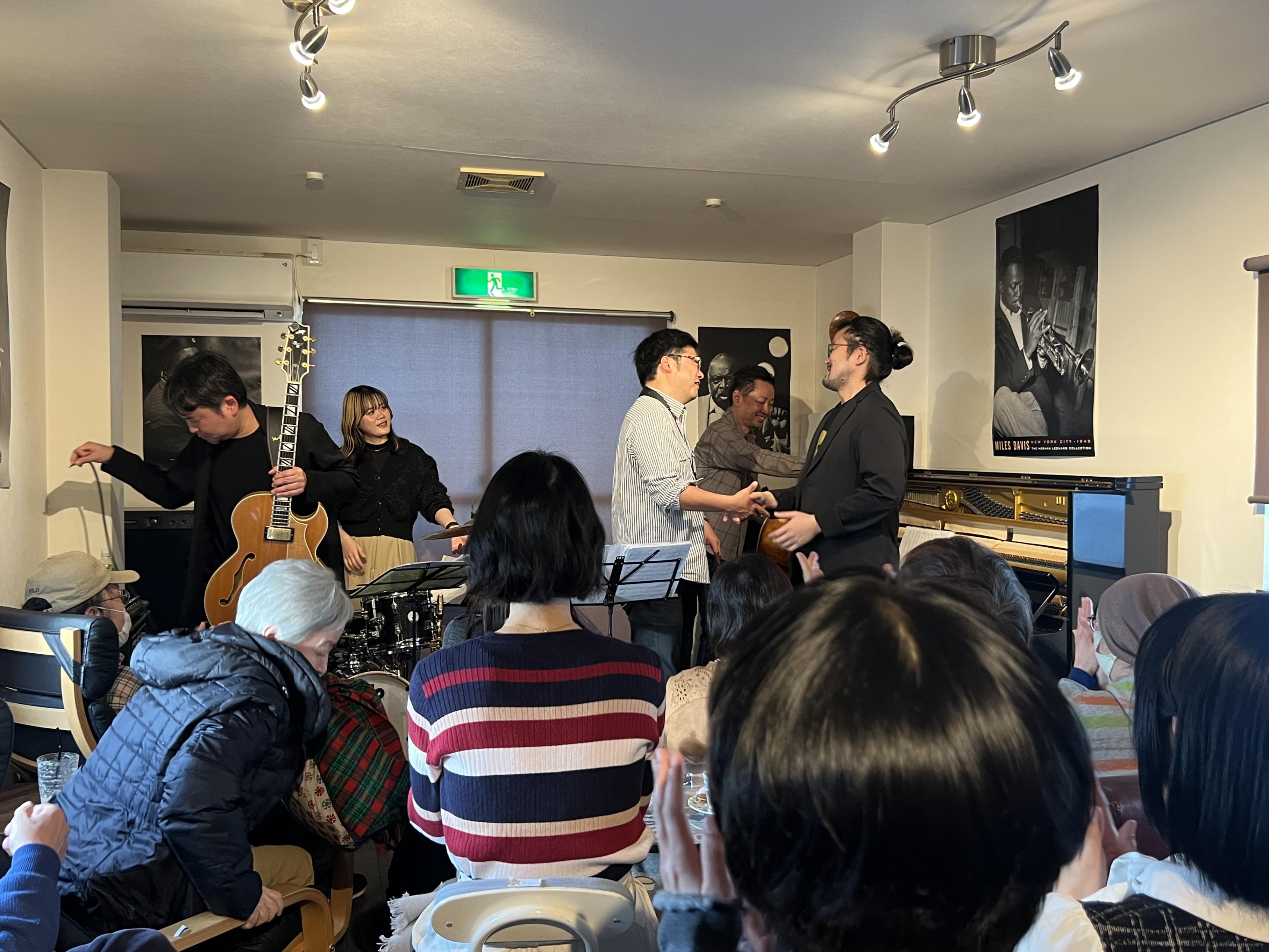 昨日のライブは「2026年初っ端な(ショッパナ)ライブから、エキサイティングなプレイで、現代のジャズシーンで個性が光るプレイヤー達の曲々を4人のメンバーが息があがるくらい客席にブッこんでくれた度肝抜くライブ」でした。