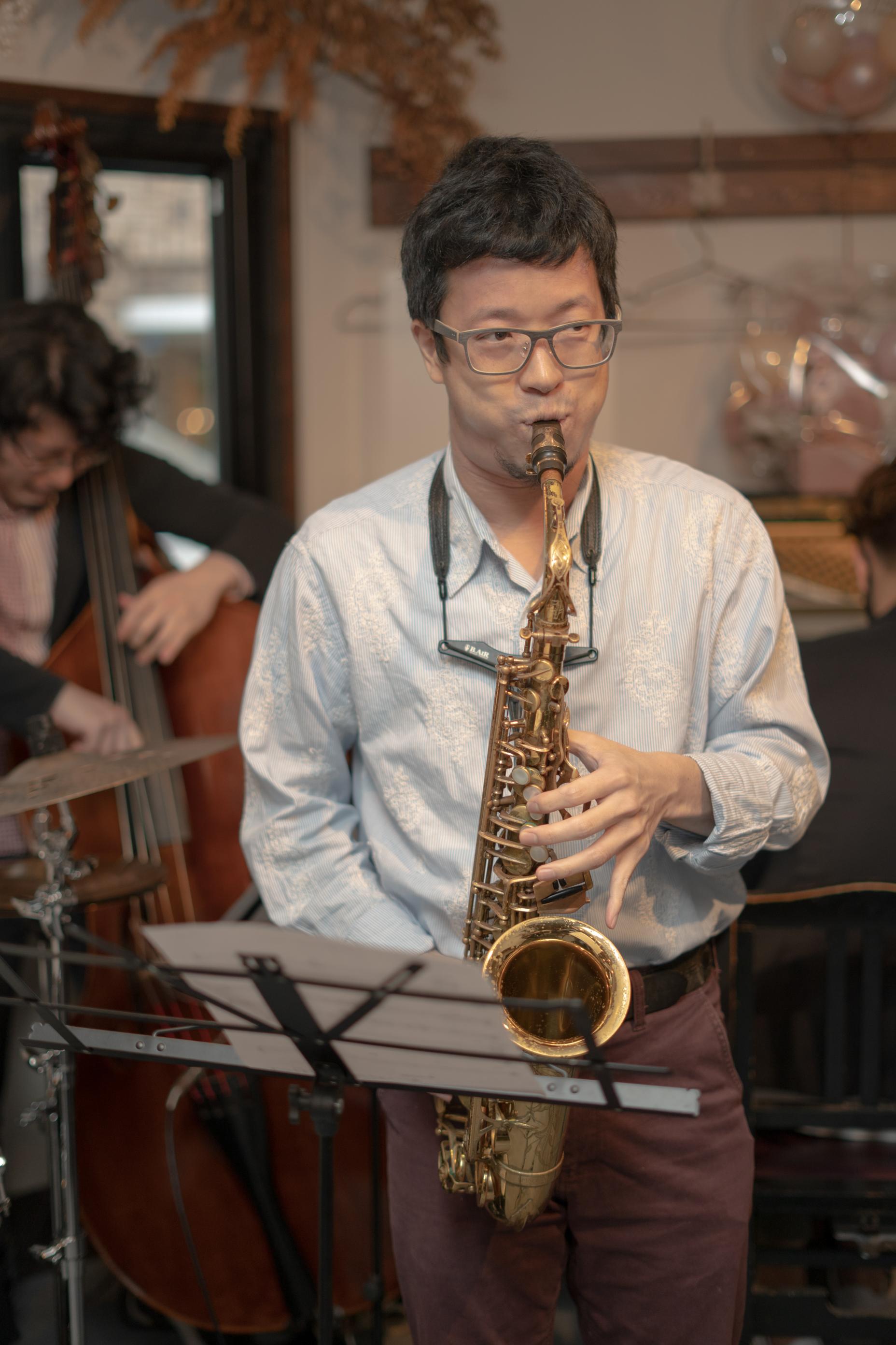 現在は自己のオリジナルバンド、CM録音、レッスンなど全国をまたにかけて活動している注目の若手サックスプレーヤーである