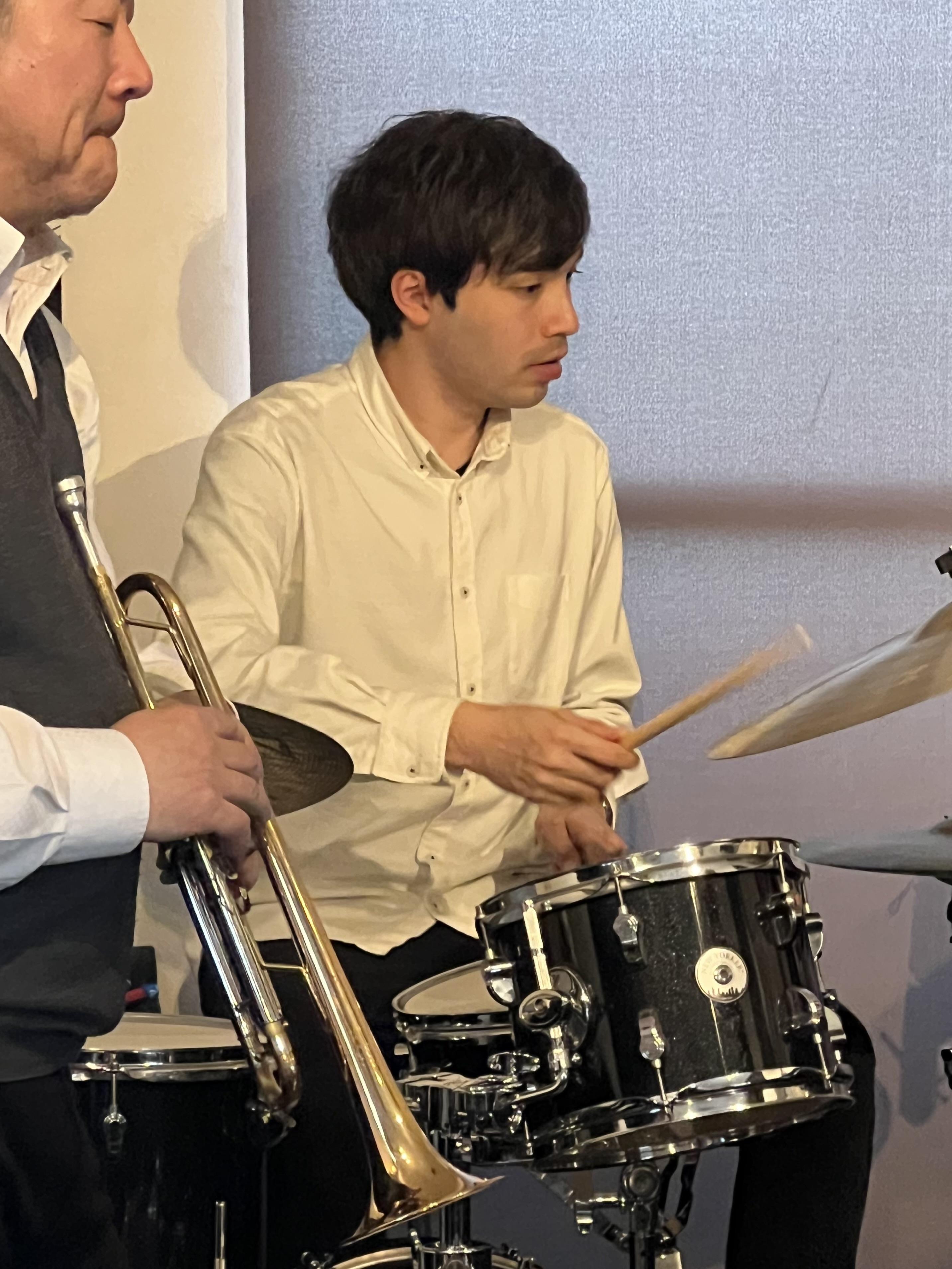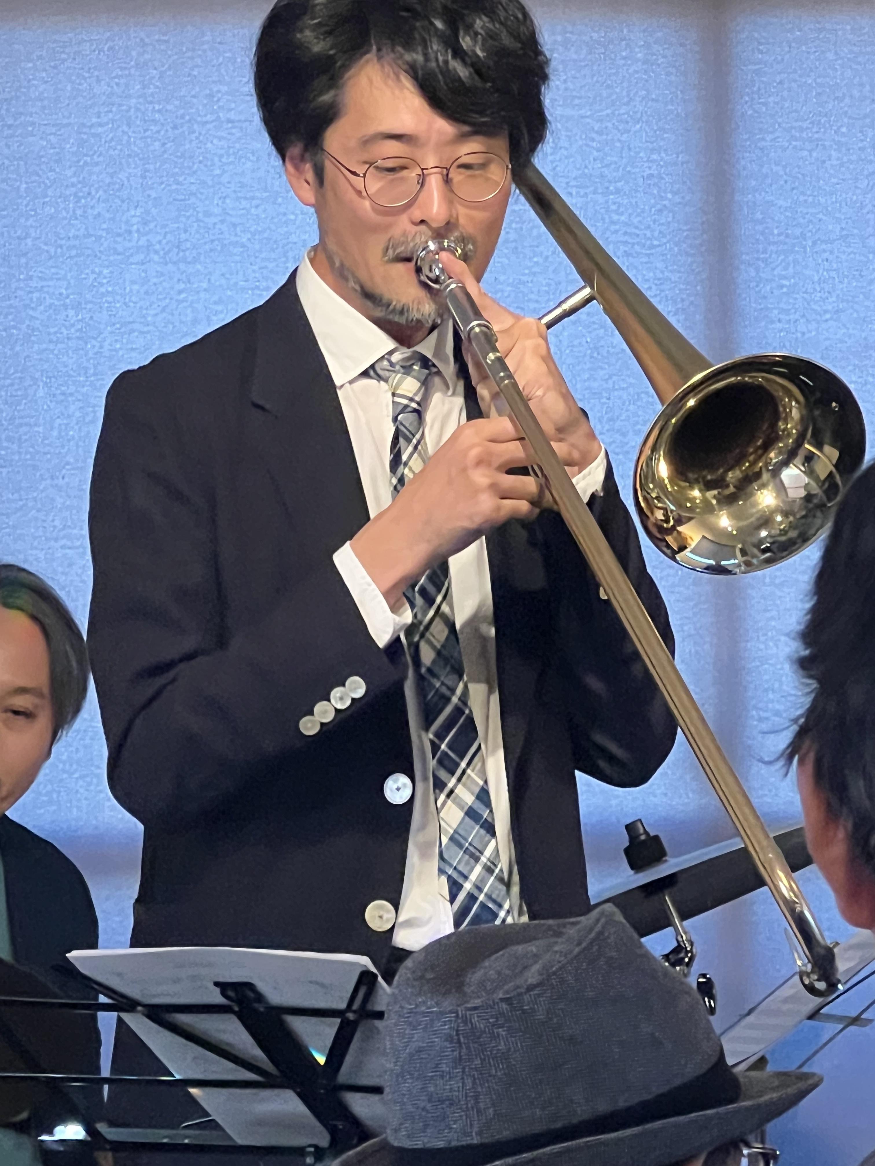 関西大学入学後、ジャズ研究会に入部しトロンボーンも始める。在学中よりライブハウスやレストラン等で演奏活動を始め、経験を積む。