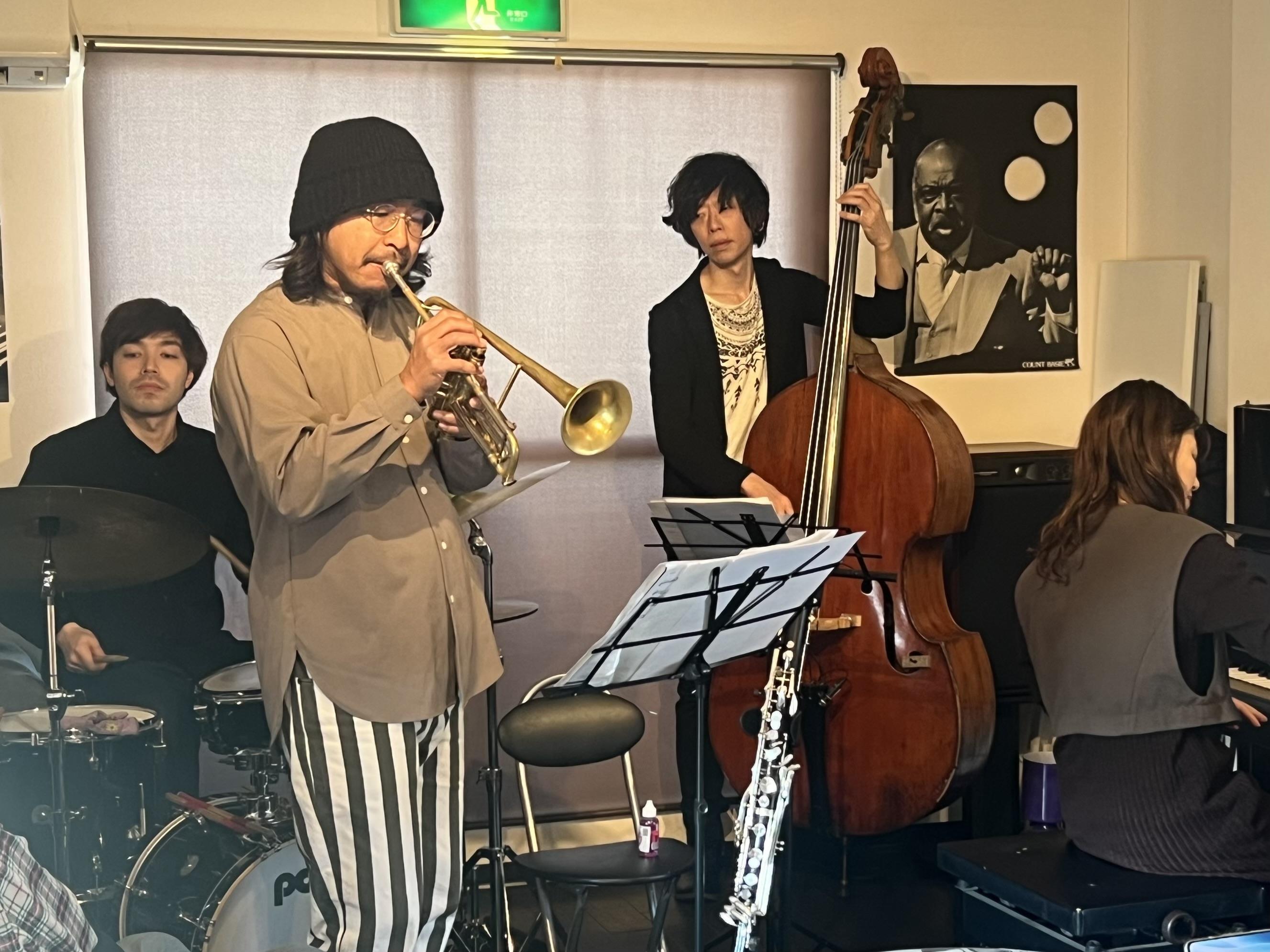 「Day dream」では、お願いして持ってきてもらったバスクラリネットの第一声が良い音で響きました。ピアノは緩やかでやさしいフレーズだけど力強い関谷タッチ。