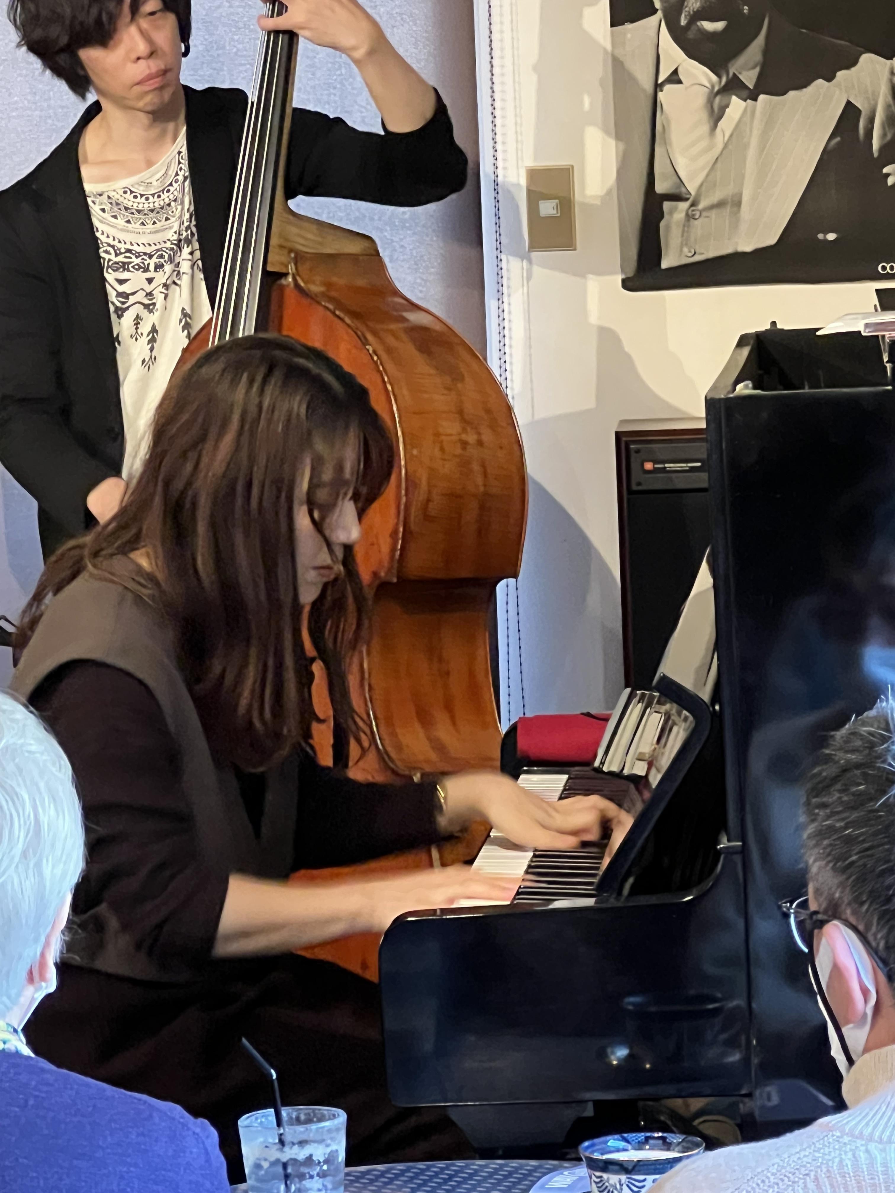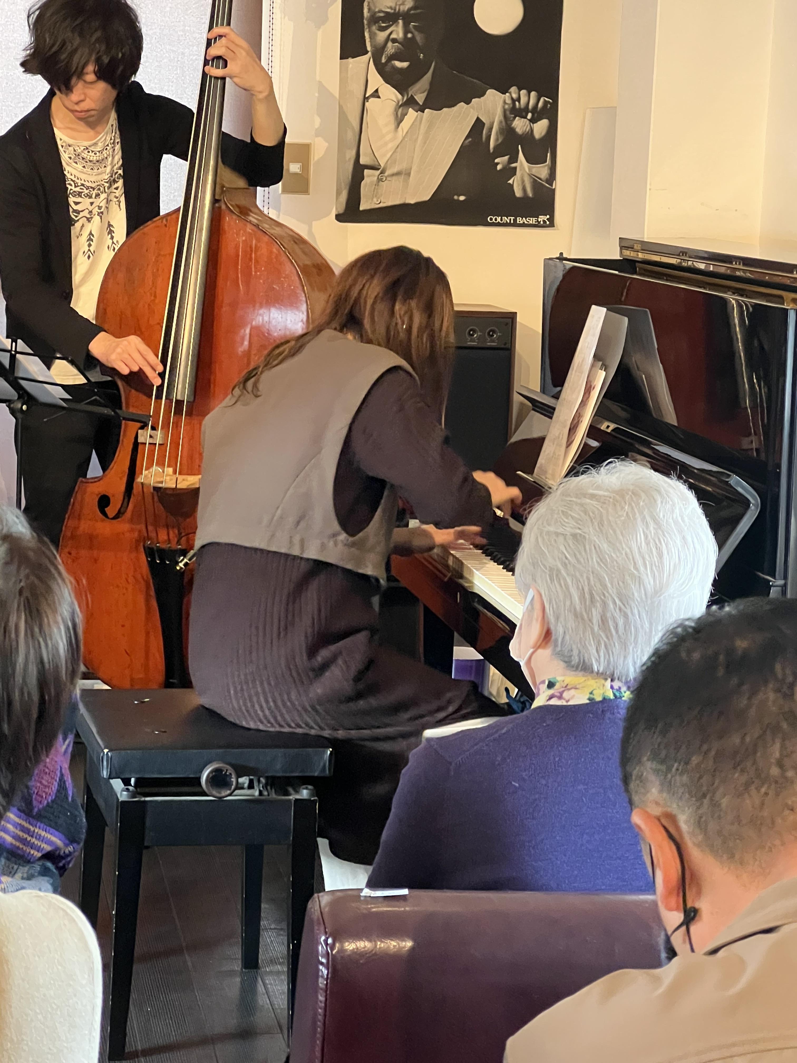 「関谷さんの最近のピアノはいつ聴いても良い」と終了後、豪語する一人のマダムの言葉が印象的。「Bye-ya」での有本即興ソロ×関谷即興ソロも、「It’s a sin~」を軽やかに弾く彼女も記憶に残りました。