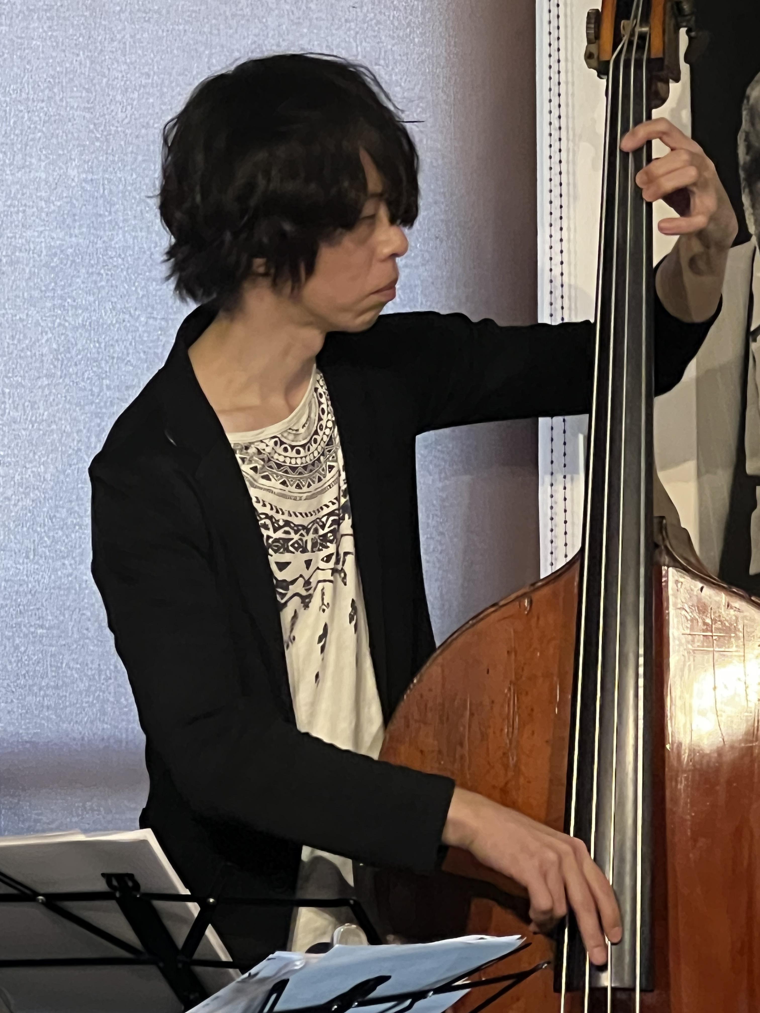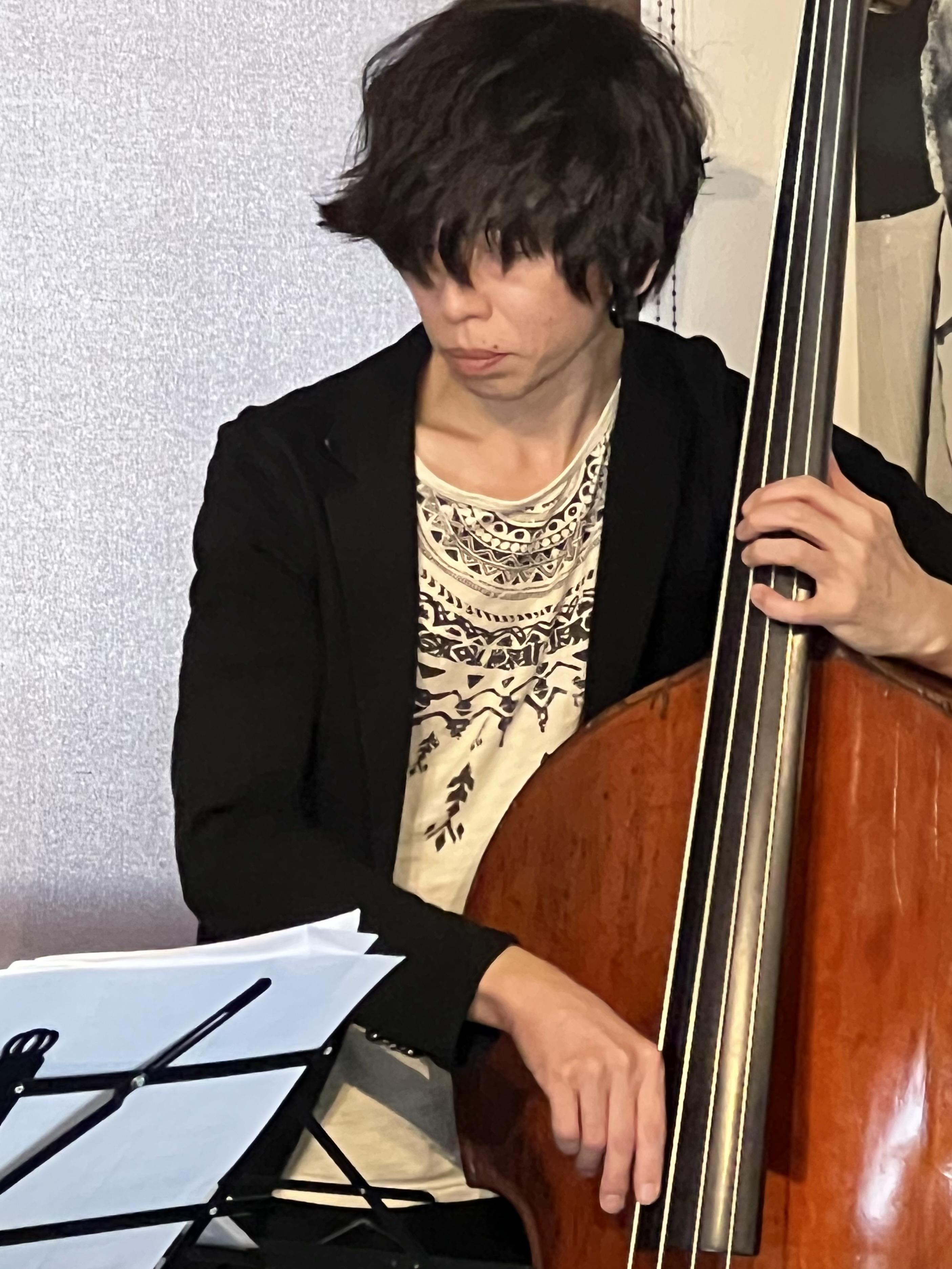 関西大学でJAZZ研に入り、演奏を始める。ウッドべースを井上孝祐氏に師事。谷町9丁目のSUBで、ベーシストの西山満氏の下、音楽を学ぶ。