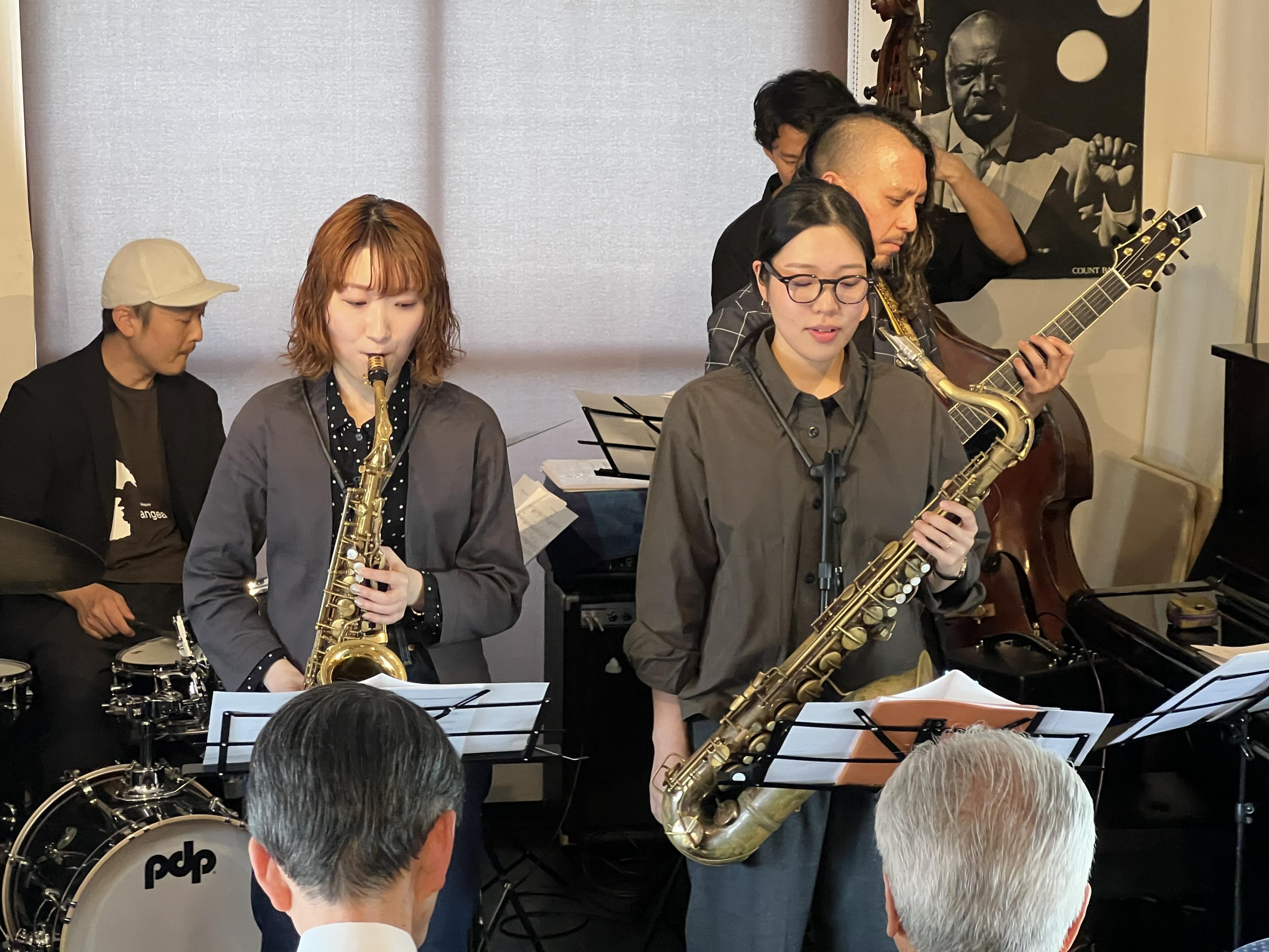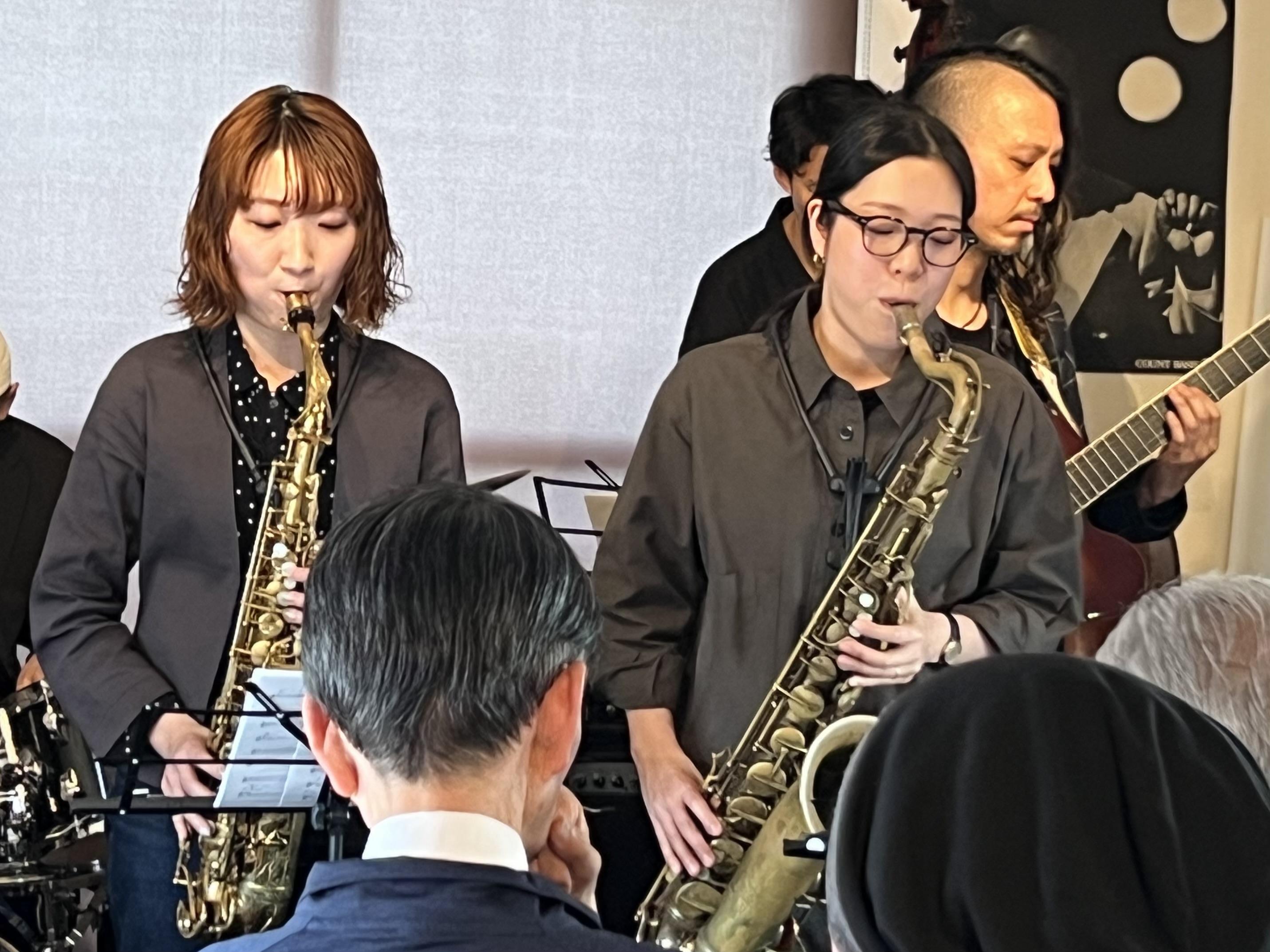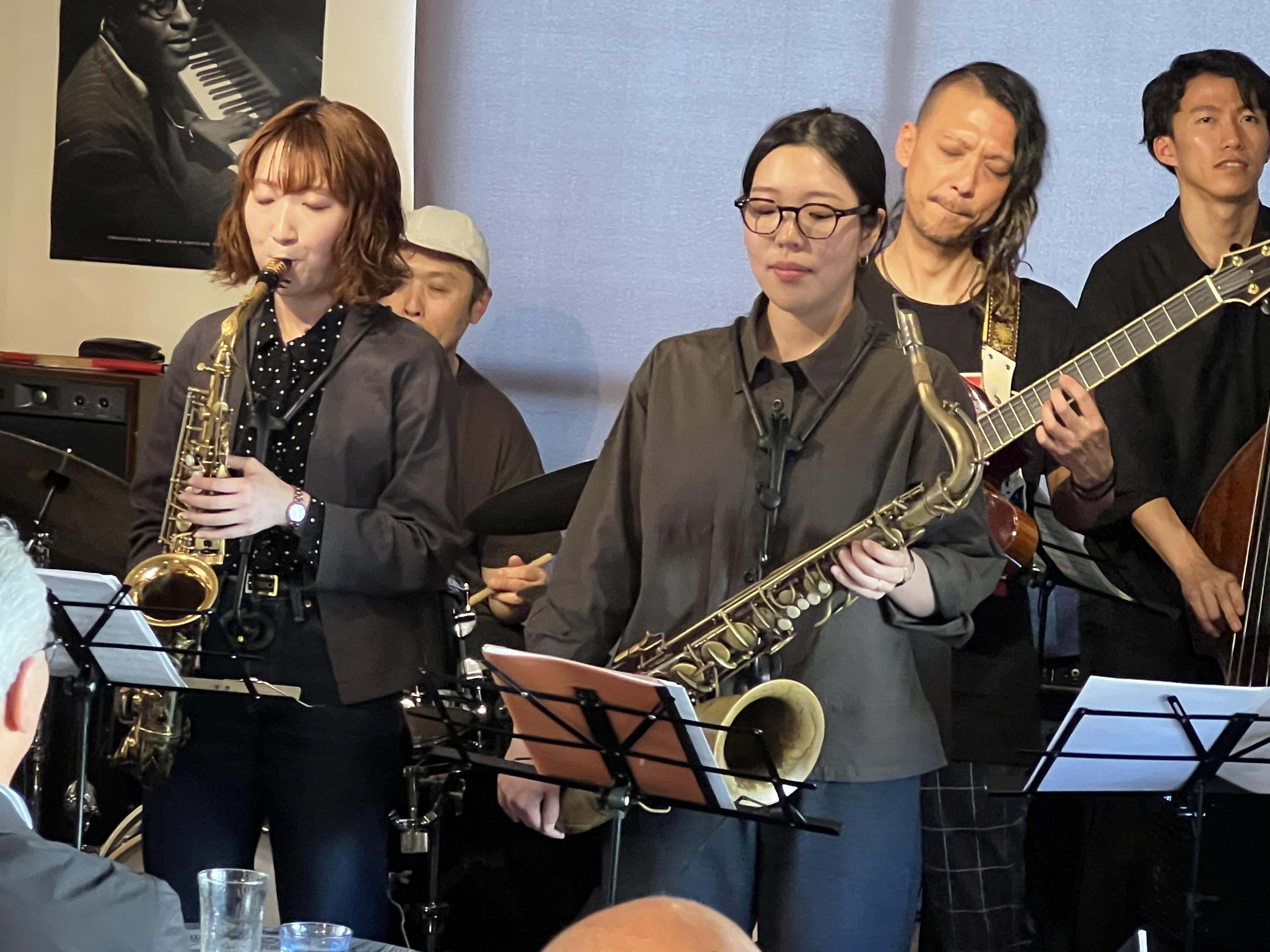 昨日は薮下ガククインテット~薮下ガク(g)米田あゆ(as)佐藤絵美里(ts)中村雄二郎(ds)梅本慈丹(b)~ライブを開催しました。