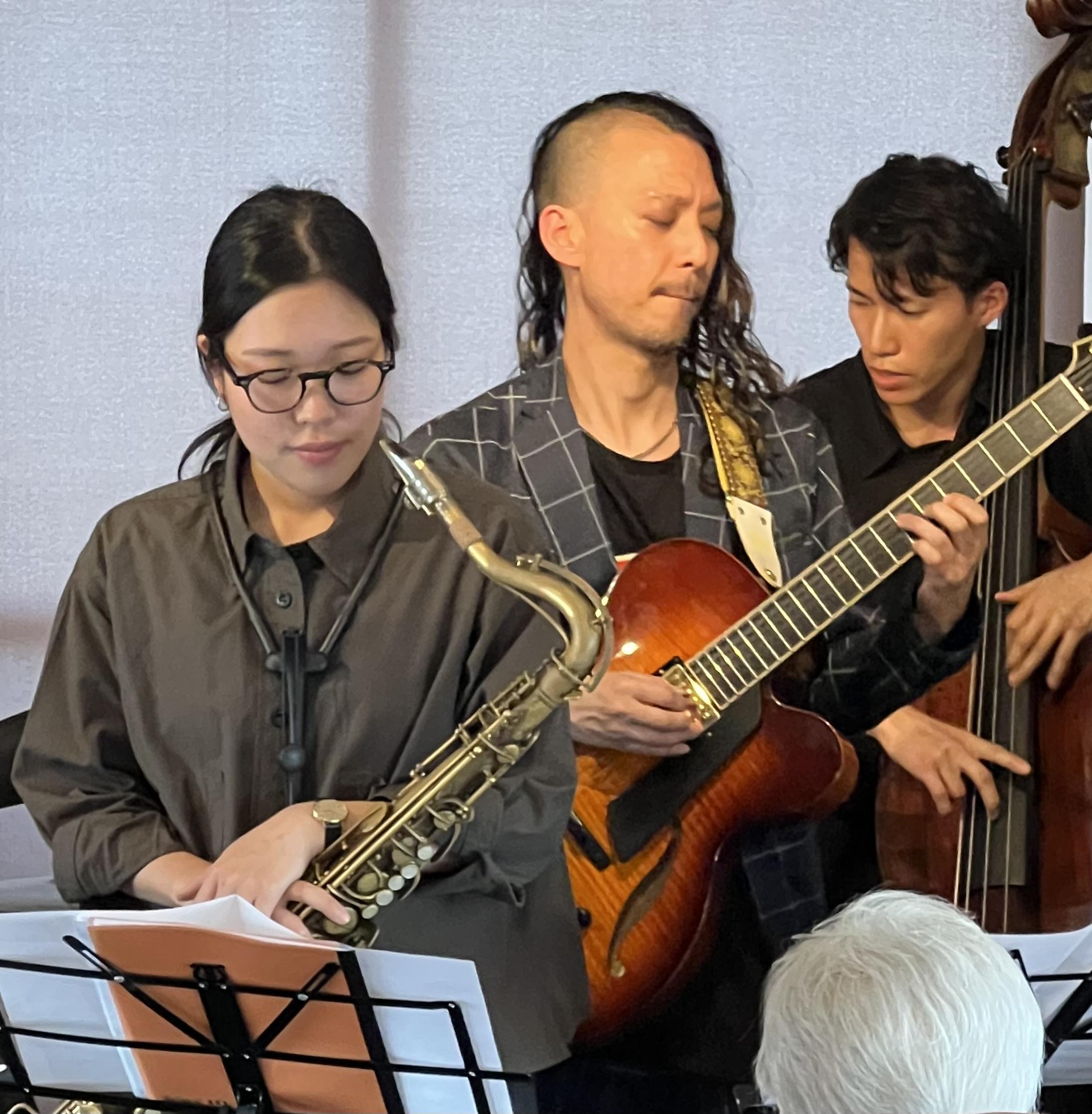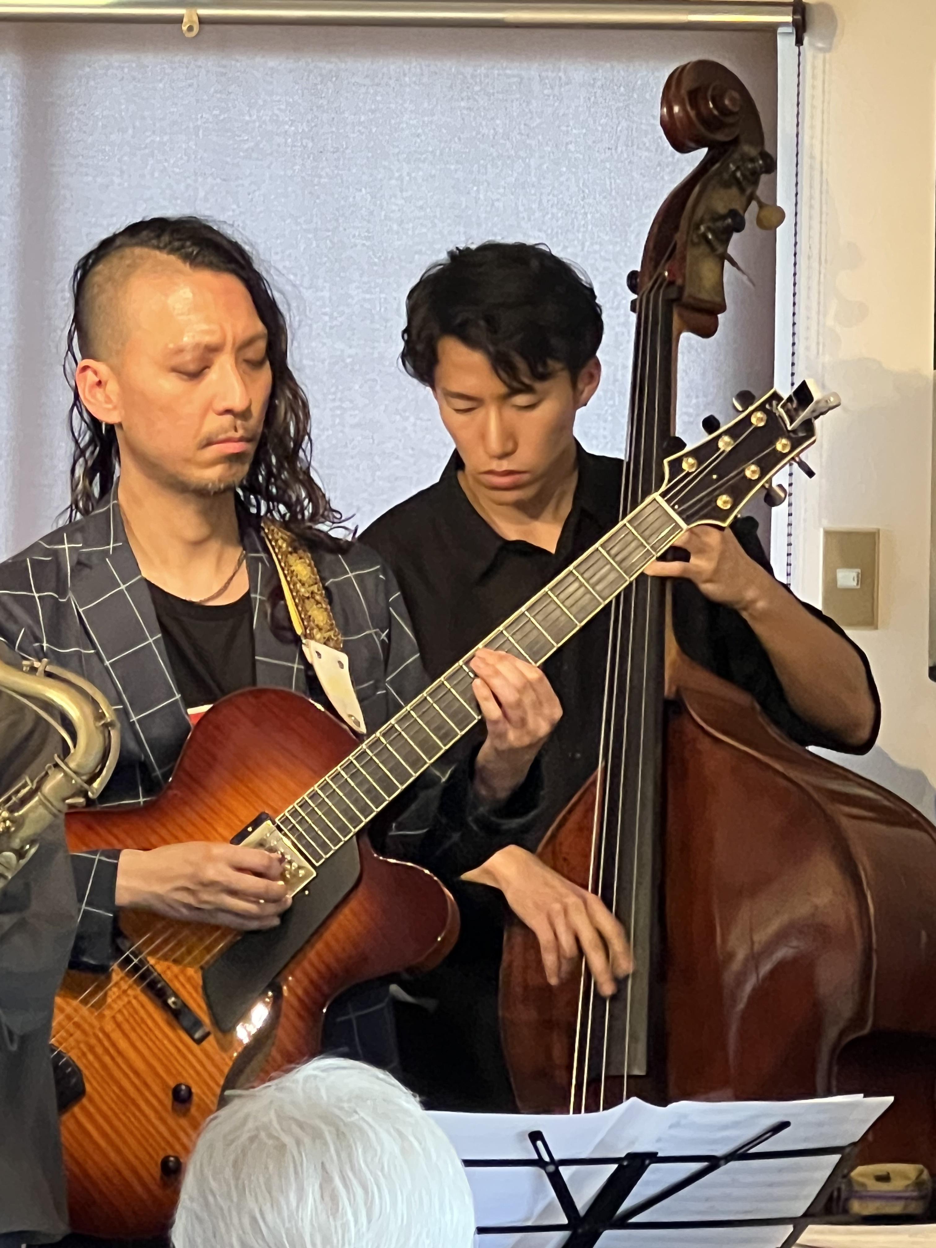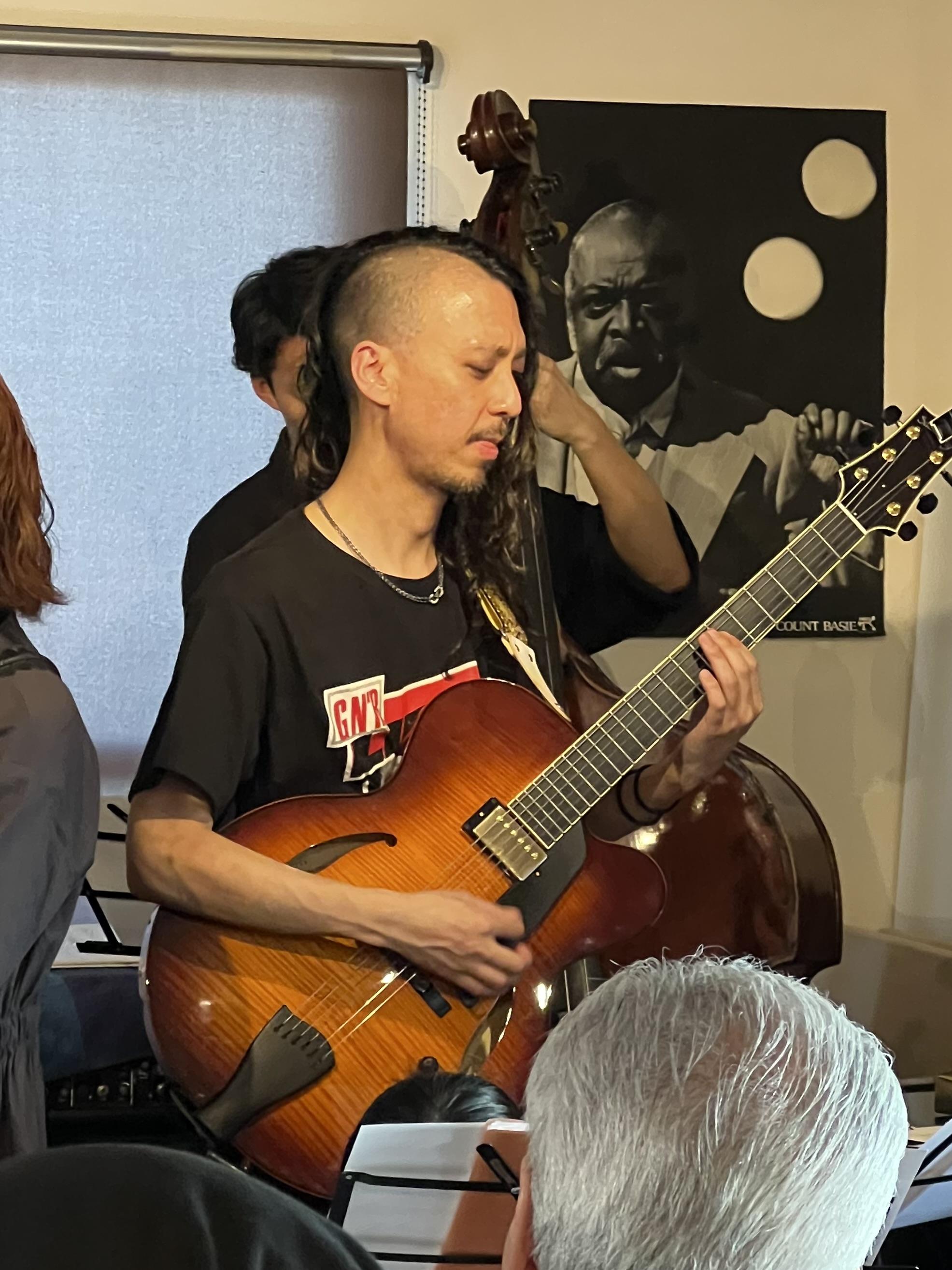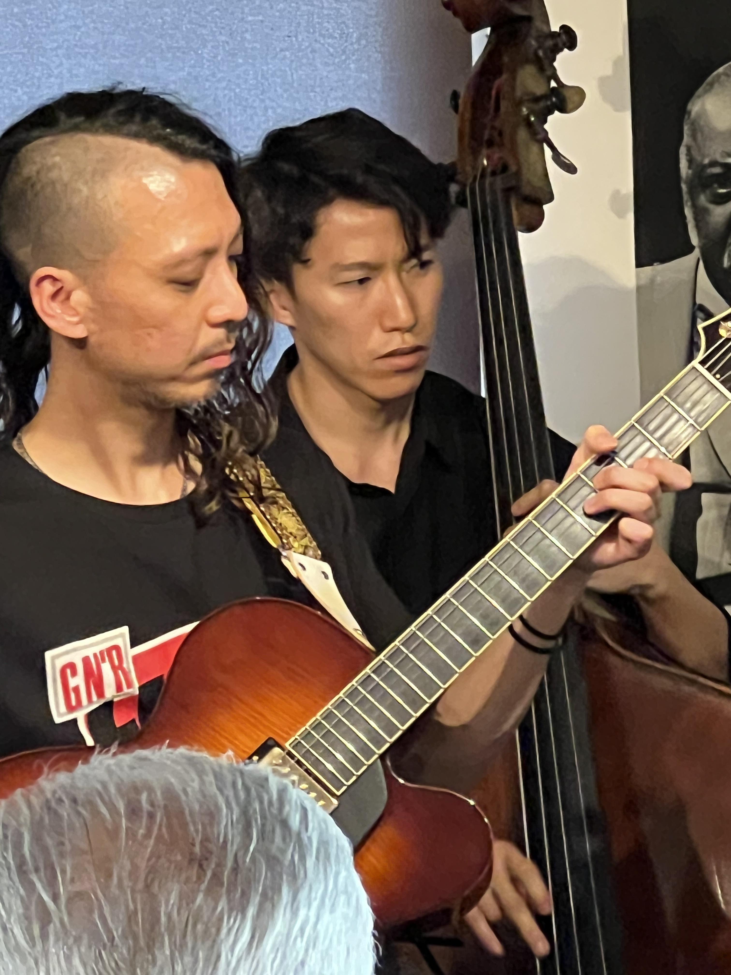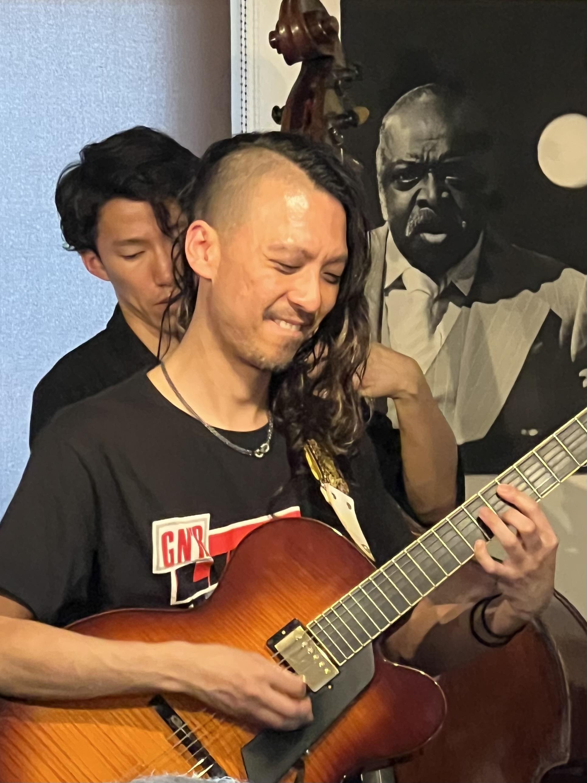 「60's Blues」では速いテンポ速弾きの長尺なギターソロを。「Body & Soul」では、薮下ガクソロから始まった素敵なバラード。音と音のスキマも聴いてしまいます。