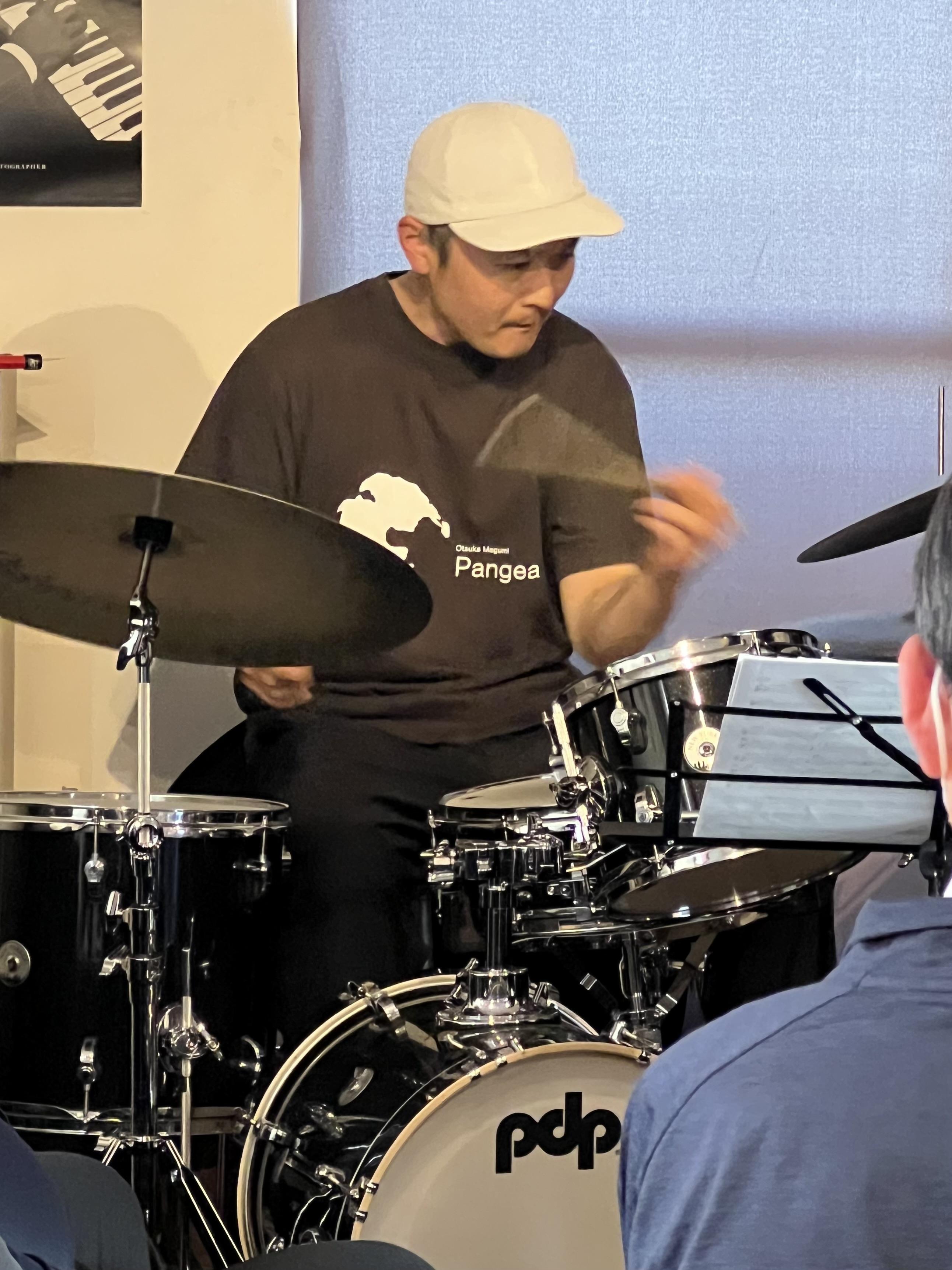 このライブで熱々のリズム隊を梅本さんと務め、米田&佐藤2管の演奏を盛り上げ、藪下さんのギター演奏を支えたのは、中村雄二郎激熱ドラムに間違いありません。ドラムソロにおいては、(細かい事についてはシロウトだから言えません)聴き手の心を鷲づかみでした。私が口にした事無い人生初「Fooo!」が思わず出てしまいました。本当に。。