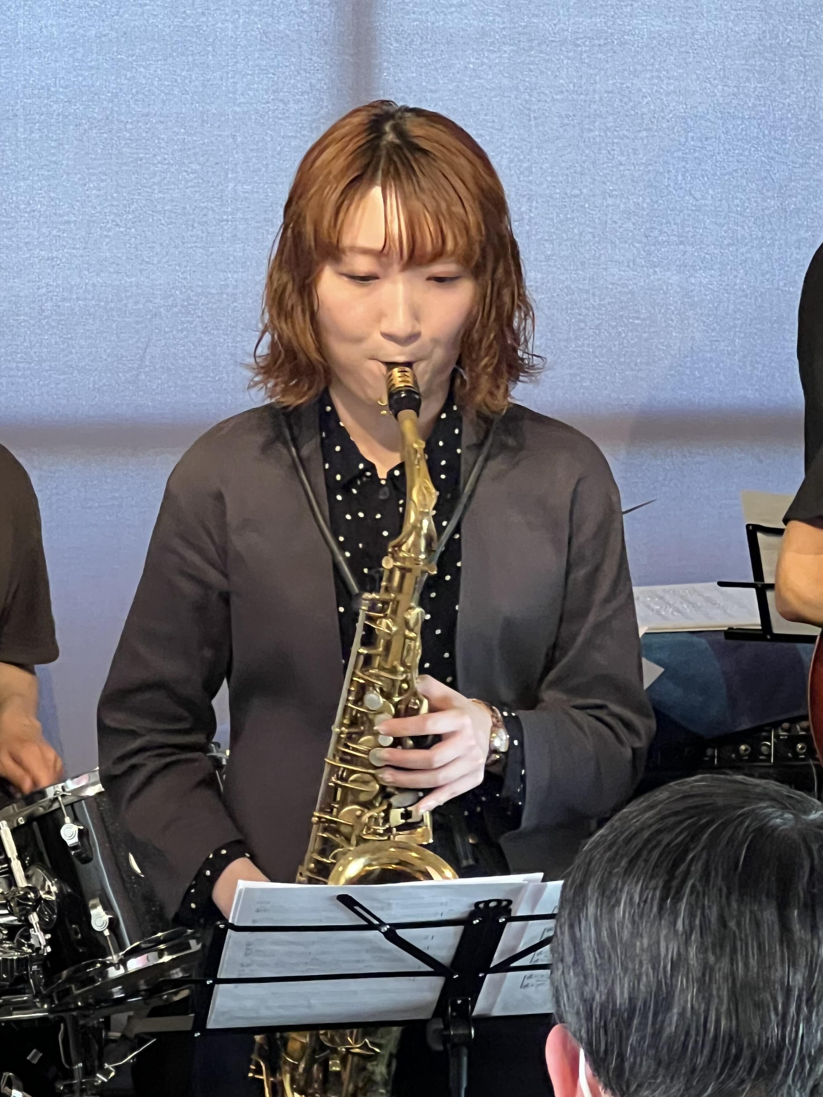 米田あゆさんアルトのくっきり鮮やかで爽やかな音色やソロが「Purple」で聴けました。特に高音が聴かせどころ!緩やかな2管コーラスから始まる「Fly」では絶叫を感じられるようなソロが印象的でした。
