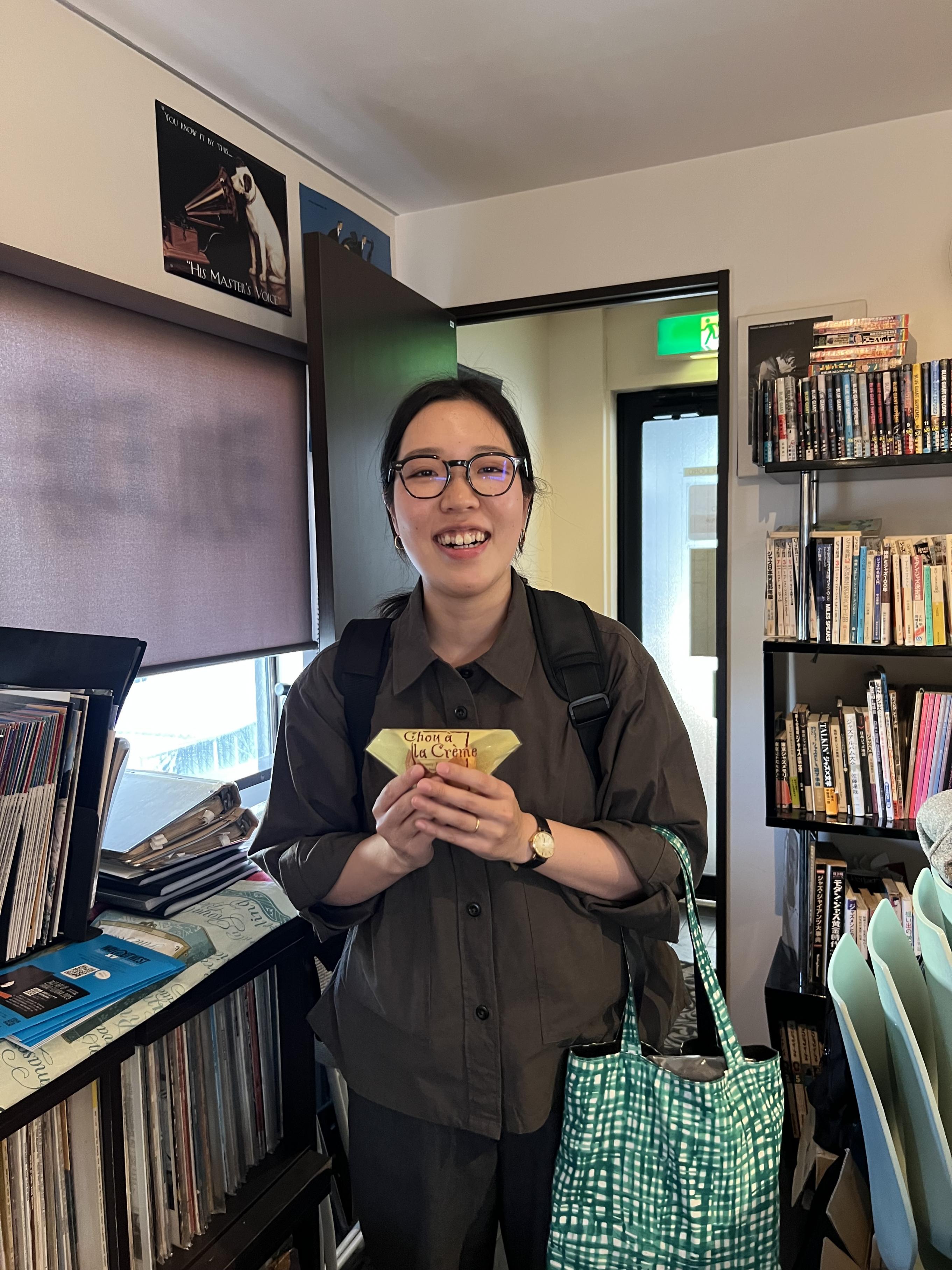 そのガクさんが、「僕、キャップに合わないんです」と。雄二郎さんのキャップを被ってみたけど、「...(そう言われるとそんな感じ)」でした。